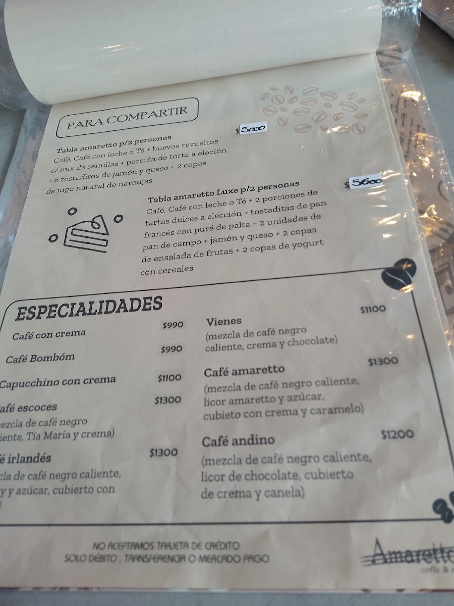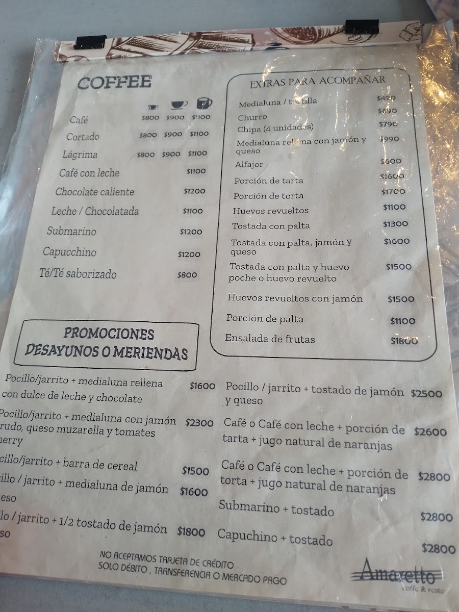 The menu at Amaretto Coffee & Resto offers a delightful blend of breakfast, lunch, and dessert options, perfect for any time of day. Their Desayuno Americano is a hearty start to the morning, packed with all the essentials for a classic American breakfast. For a lighter yet satisfying option, the Desayuno Con Medía Lunas provides a delicious pairing of croissants and coffee. If you're craving something sweet, the Lágrima Y Torta Alemana is an irresistible choice, combining a rich German cake with a perfectly brewed coffee. For those seeking a more substantial meal, the Wok Vegetariano Con Mix de Semillas offers a healthy and flavorful vegetarian option, bursting with the crunch of mixed seeds. Don’t miss the Porción de Torta Alemana, a decadent slice of German cake that perfectly complements the restaurant's cozy ambiance. If you’re in the mood for a traditional Argentine breakfast, the Desayuno de Campo provides a fulfilling selection of local favorites. Overall, Amaretto Coffee & Resto’s menu is a blend of comfort and indulgence, making it a must-visit spot for a delicious meal any time of day.